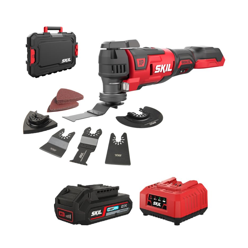 Tehokas ”20V Max” (18 V) SKIL 3650 -akkumonitoimityökalu kuuluu SKIL ”brushless XP” -työkalujen mallistoon. ”XP”-työkalut tarjoavat ylivertaisen suorituskyvyn ja kestävyyden korkealuokkaisten teknisten ominaisuuksiensa ja edistyksellisten digitaalisten hiiliharjattomien moottoreidensa ansiosta. Kuten kaikki muutkin SKIL ”20V Max” -akkutyökalut, tämä malli saa voimansa alan johtavasta, edistyksellisestä ”PWRCORE 20™” -akku- ja laturiteknologiasta. Hiiliharjaton SKIL 3650 mahdollistaa suuren 3,6°:n värähtelykulmansa ja säädettävän nopeutensa ansiosta aina parhaat työtulokset mitä erilaisimpien materiaalien työstössä. Ainutlaatuinen ”VRS+” vaimentaa tärinän erittäin alhaiselle tasolle, mikä varmistaa jatkuvasti miellyttävän työskentelyn. Tärinän vaimentamiseksi leikkuupää on erotettu monitoimityökalun päärungosta ja moottorin ulkopuoli on suojattu vaahtomuovipaloilla. Digitaalinen hiiliharjaton moottori on entistä voimakkaampi ja tehokkaampi ja se tarjoaa kymmenen kertaa pidemmän käyttöiän hiiliharjalliseen moottoriin verrattuna. Toimitukseen sisältyviä tarvikkeita vaihtamalla selviydyt tällä monitoimityökalulla useista erilaisista kodin töistä, kuten hiomisesta, sahaamisesta ja leikkaamisesta. Lisävarusteiden vaihtaminen ei enää ole ongelma pikavapautusvivun ansiosta. Monitoimityökalu on yhteensopiva markkinoilta yleisesti saatavana olevien ”Starlock”-perustarvikkeiden ja ”OIS”-tarvikkeiden kanssa, joten löydät taatusti sopivan tarvikkeen joka työhön. LED-kaksoisvalo varmistaa hyvän näkyvyyden työkohteeseen. Ergonominen muotoilu ja pehmustettu kahva varmistavat työnteon mukavuuden. SKIL 3650 JA toimitetaan kantolaukussa, johon on pakattu segmenttisahanterä, 2 upotussahanterää, 2 kaavinterää, hiomapohjalevy ja 9 hiomapaperia. Akku ja laturi eivät sisälly toimitukseen.