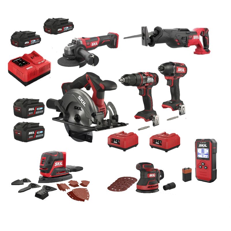 SKIL 20V Max – 8 työkalun jättisetti vain Black Friday / Week -kampanjassa. Mukana iskuruuvinväännin, porakone, 2 hiomakonetta, puukkosaha, kulmahiomakone, pyörösaha ja rakenneilmaisin. Kaikki toimivat samalla PWRCORE 20™ -akulla. Harjattomat moottorit, tehokkaat akut, pikalaturi ja laaja tarvikkeiden valikoima. Täydellinen setti rakentamiseen, purkuun, hiontaan, poraamiseen ja mittaamiseen. Rajoitettu erä!
