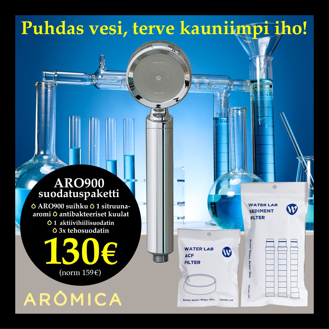 Ongelma: Jokainen suihku on kuin astuisit kemikaalikylpyyn. Klooria, raskasmetalleja, ehkä vähän arsenikkia sivussa? Ei ihme, jos iho kutiaa ja hiukset muistuttavat olkikuontaloa.