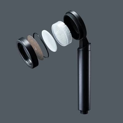 The shower head brings a spa-level experience to your home by correcting poor cleaning performance, pampering your skin with aroma gels and moisturizing properties, while still saving water consumption. The AS-9000 includes a filter that filters heavy metals and minerals that promote skin dryness, such as iron, lime and copper, from the water. Antibacterial balls also clean impurities from the water. A wonderful everyday luxury!