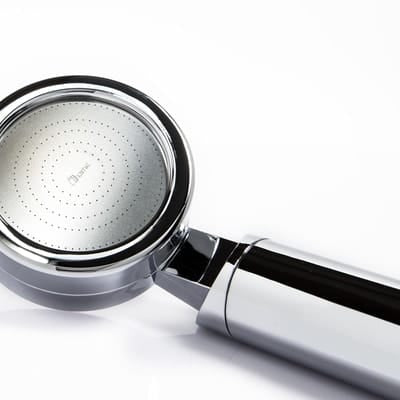 Suihkunpää tuottaa miellyttävän paineen pestessä huomattavasti pienemmällä määrällä painetta.