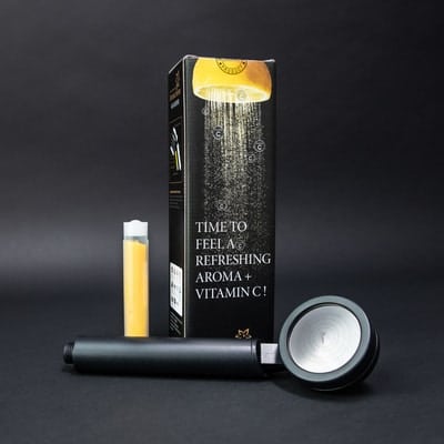Water impurities remain in the filter of the Aroma Sense shower head. Vitamin C removes the drying effect of chlorine from tap water. The vitamin C in the aromas helps in treating dry skin. You can choose the scent according to the season.